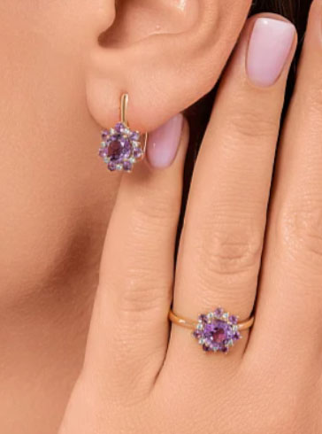 - изящные украшения с аметистом — этот камень считается оберегом семейного счастья, способным гасить конфликты и возвращать душевное равновесие;