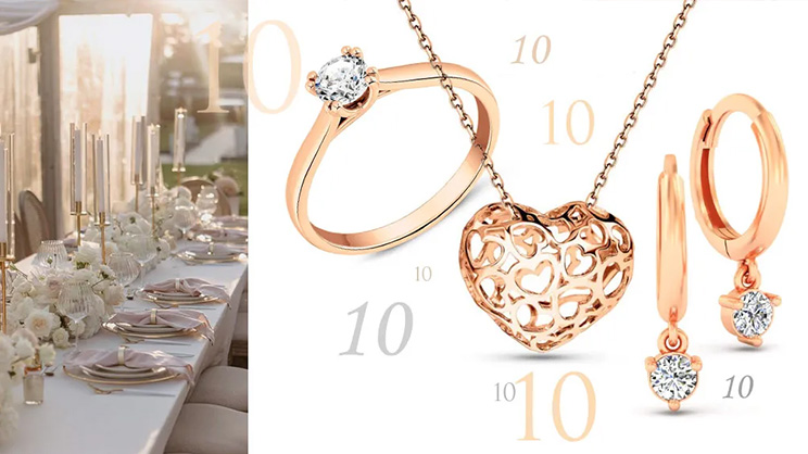 Никто не запрещает вам подарить на 10 лет свадьбы супруге или супругу золото, поскольку этот драгоценный металл традиционно связывается с благополучием и достатком, что особенно важно в семейной жизни. Такое украшение на десятилетие супружества станет знаковой драгоценностью в личной коллекции. Теплый золотой блеск будет годами напоминать о домашнем уюте. Кстати, украшение может дополнять традиционный драгоценный камень – бриллиант, который давно связывается с глубокими чувствами и браком. Его ювелирный аналог – фианит как вставка в кольцо или подвеску также порадует яркими радужными переливами.