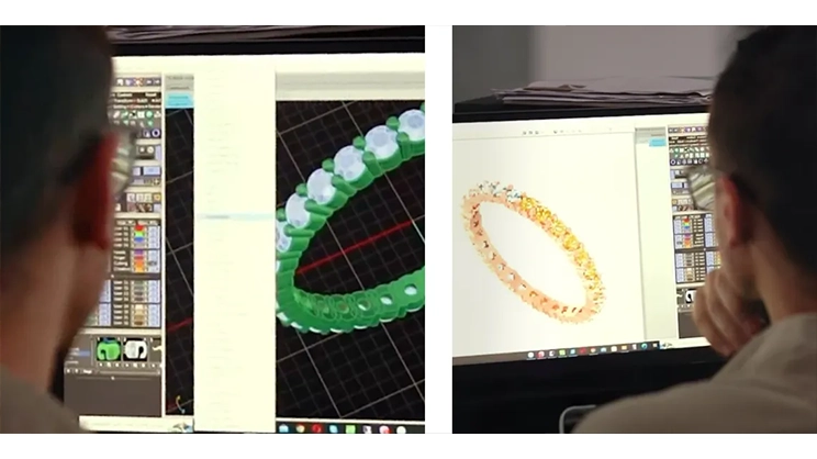 Это момент, когда абстрактные идеи начинают приобретать конкретную форму и структуру. С помощью компьютерной техники двухмерный эскиз превращается в трехмерное изображение, которое можно ощутить и оценить в реальном масштабе. В этом процессе учитываются все аспекты дизайна, включая пропорции, эргономику и детали. Вносятся нужные коррективы, после чего делают модель украшения (так называемую «восковку»), которая будет точной копией будущей драгоценности. Делают модель кольца из специального воска вручную или распечатывают на 3D-принтере, что значительно дороже. Точность и внимание к деталям на этом этапе играют решающую роль. Модель шинки кольца и отдельных элементов становится макетом, который будет использоваться в процессе изготовления украшения.