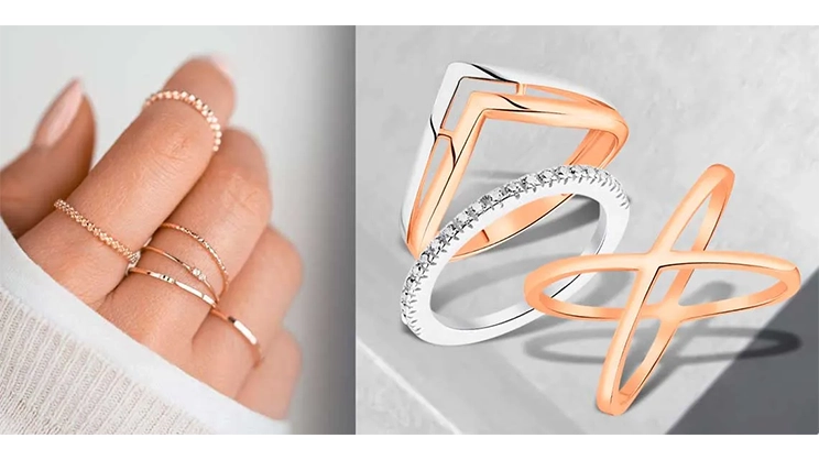 - на одну руку надевайте кольцо из белого золота, на другую – несколько серебряных тонких колечек.