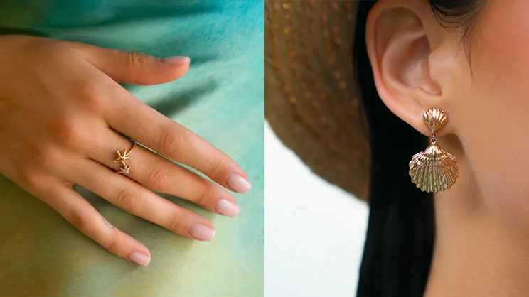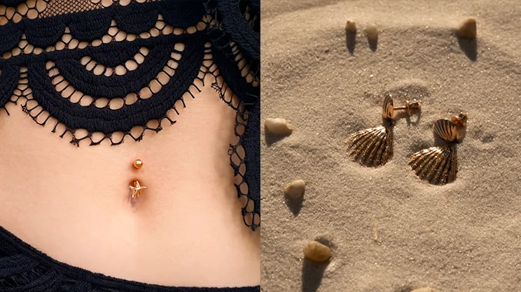 Основное внимание в этой коллекции уделено мельчайшим деталям и тонкой работе мастеров. Серьги и украшения для пирсинга выполнены в виде ракушек, морских звезд и пальм, которые можно носить с любыми летними нарядами. Благодаря легкому и невесомому дизайну их комфортно носить на протяжении дня, а изысканные формы добавляют образу элегантности.