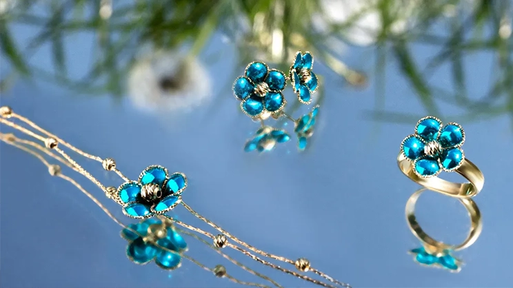 Украшения с уникальной цветовой гаммой олицетворяют свежесть и невесомость неба, а также спокойствие и гармонию морских волн, даря ощущение легкости и непринужденности.