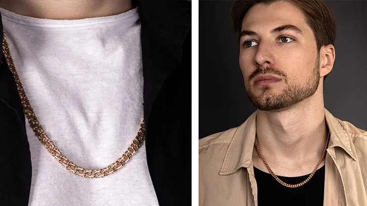 Мужские цепочки на шею обрели в последние годы новое звучание в составе мужского образа благодаря влиянию хип-хоп-культуры. Сейчас разнообразными цепочками — одиночными или целыми многослойными композициями — можно украсить абсолютно любой наряд, независимо от того, носите ли вы дерзкую «кожанку» или элегантную рубашку. Цепные колье можно встретить на ком угодно — от знаменитостей до профессиональных спортсменов.