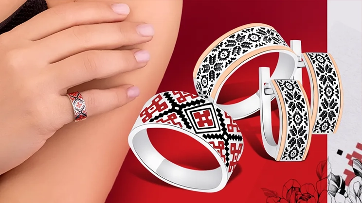 День вышиванки в Украине — прекрасный повод подарить оригинальное украшение близкому человеку или приобрести ювелирную обновку для себя, особенно если есть планы на праздник и хочется создать безупречный образ. Для этого можно подобрать браслет или кольцо с орнаментом в украинском стиле. Ювелирные мастера украшают изделия различными узорами: