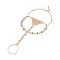 Если отбросить все лишнее, слейв-браслет — это ювелирная конструкция, соединяющая браслет с кольцом. Между ними — декоративные цепочки, одна или несколько, с подвесками, камнями, звеньями или тканным узором. Если классические браслеты на руку функционируют как самостоятельный элемент, то это необычное изделие объединяет несколько частей, работающих как единое целое, — оно подчеркивает линию кисти и делает акцент на жестах. Часто такой аксессуар выглядит будто ювелирная перчатка — только без ткани и с гораздо большим вниманием к проработке деталей. Он может быть тонким и почти незаметным или массивным и нарочито графичным — но внимание такой штрих в образе точно привлечет.
