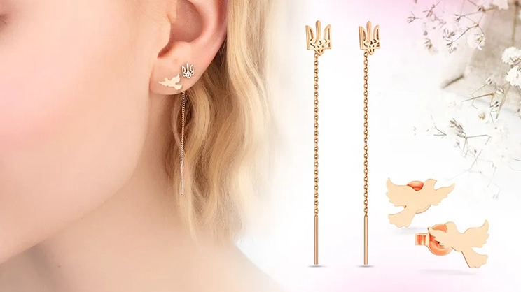Выбирайте патриотические серьги из золота с Гербом Украины или заказывайте более романтические модели, украшенные сердечками и бабочками. Не менее роскошно смотрятся цепочки с цветной эмалью и яркими фианитами.