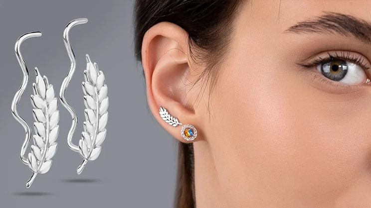 Купить серьги-колоски можно не только в виде традиционных колец. Альтернатива классике – ультрамодные клаймберы. Они выглядят как длинные пусеты, создавая впечатление, что в ухе есть несколько проколов. Серьги-альпинисты – интересные и кокетливые, и что самое главное – всегда придают вашему образу индивидуальности.
