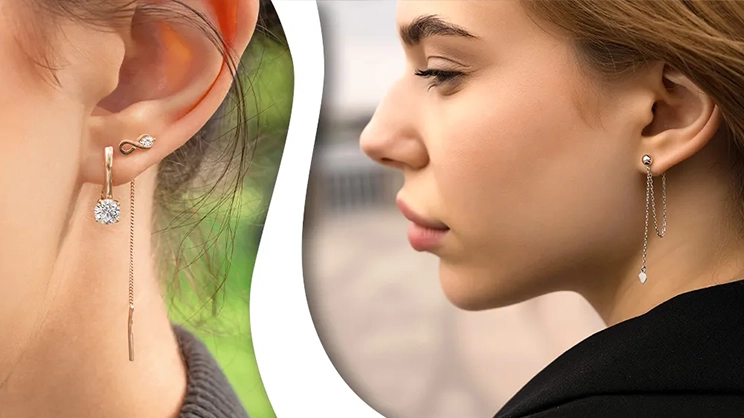 Среди нестандартных решений следует выделить серьги-каффы, которые могут быть, в том числе, без застежки. Такое украшение не будет нуждаться в проколе, и его можно надевать на разные части уха, в том числе на хрящик сверху. Также стильным и оригинальным способом выделиться станут моносерьги и ассиметричные модели.