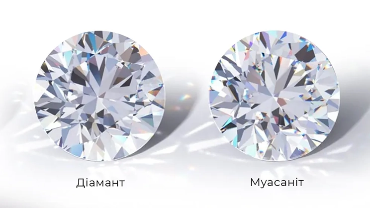 - Оцінити блиск. Муасаніт має більш райдужний блиск і заломлює світло сильніше, ніж діамант.