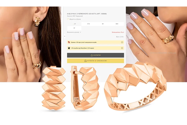 На фото всі вироби мають бездоганний вигляд — насичені кольори, ідеальні переходи, витончені деталі та міцні кріплення. Сьогодні онлайн-покупки стали звичним явищем, зокрема і ювелірні. Один клік — і розкішні сережки ніби з обкладинки вже їдуть до вас. Але водночас виникають і деякі побоювання, часом зовсім не безпідставні. У реальності колір може відрізнятися, розмір — не підійти, а за текстовим описом не завжди можна зрозуміти, як прикраса «поводитиметься» вживу. Тому вибір коштовностей у режимі онлайн викликає пересторогу навіть у досвідчених покупців. Це покупка, до якої висувають особливі вимоги: вона має бути не просто красивою, а ідеально підходити за всіма параметрами. Розібратися, як не помилитися в цьому непростому процесі, — необхідність для кожного шанувальника ювелірної естетики.
