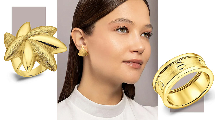 Матові ювелірні прикраси сьогодні — символ сучасного смаку та оригінального підходу до формування персонального іміджу. Вони протиставляють м'якість блиску, простоту — вигадливості, а стриманий шарм — показній розкоші. У центрі уваги не класичний феєрверк глянцевих іскор, а витончена текстура, на якій світло грає м'яко, ніби ковзає поверхнею. Тому матове покриття на виробах із благородного металу стало головною тенденцією останніх років. Чому ж дедалі більше жінок вибирають саме матове золото — розповімо докладно в статті.