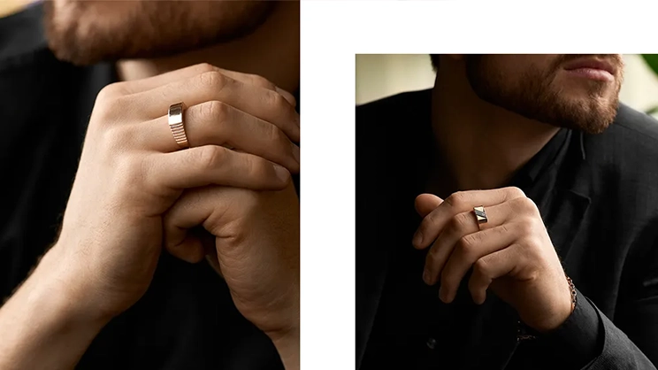 Чоловічі каблучки із золота ідеально пасують до класичних образів. Вони додають вишуканості та елегантності, а також наголошують на особливому статусі власника. Такі прикраси чудово впишуться в образ із костюмом. Срібні прикраси можуть дати більше свободи у виборі. Вони гармонійно поєднуються з класичним та спортивним стилями, кежуал-стилем, шкіряним та джинсовим одягом.