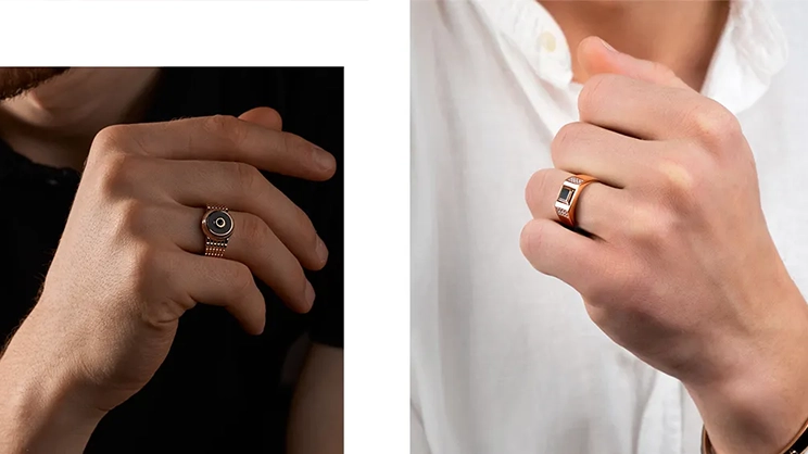 Мінімалізм є одним із основних чоловічих трендів. Його характеризують прості форми, чисті прямі лінії та використання мінімальної кількості деталей. Також серед чоловіків популярні моделі з геометричним дизайном та символікою (релігійною, патріотичною, світоглядною). Персоналізація каблучок за допомогою гравіювання – ще один тренд. Це може бути ім’я власника, важлива дата чи цитата. Загалом, сучасні чоловічі прикраси стають все більш індивідуальними та різноманітними, завдяки чому допомагають краще самовиражатися через додаткові елементи особистого стилю.