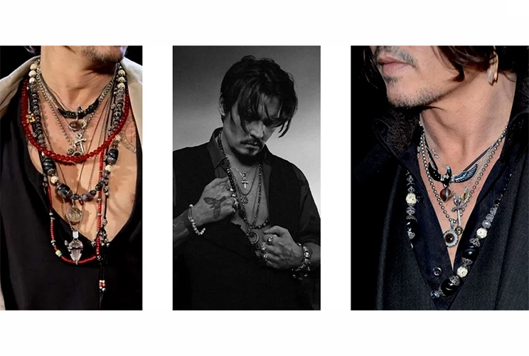 Багатошаровість — це не просто модний тренд для актора, а спосіб проявити свою багатогранну особистість. Носити одночасно кілька підвісок і ланцюжків, поєднувати їх у різних комбінаціях — означає підкреслювати свою незалежність, сміливість і унікальність. Кожен кулон, кожен ланцюжок на його шиї має свою цінність, і разом вони складають живу історію, що розповідає про самого Джонні Деппа.